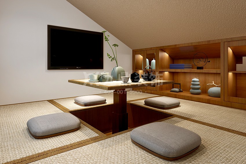 都市水乡装修效果图设计说明:原汁原味的展现一种自然的生活状态,客户的家里收纳物品很多,增加了榻榻米区域与衣帽间处理,同时家里还增加了,阅读区,书房,酒吧区,影音室等功能区域,满足客户多元化的品质生活需求。