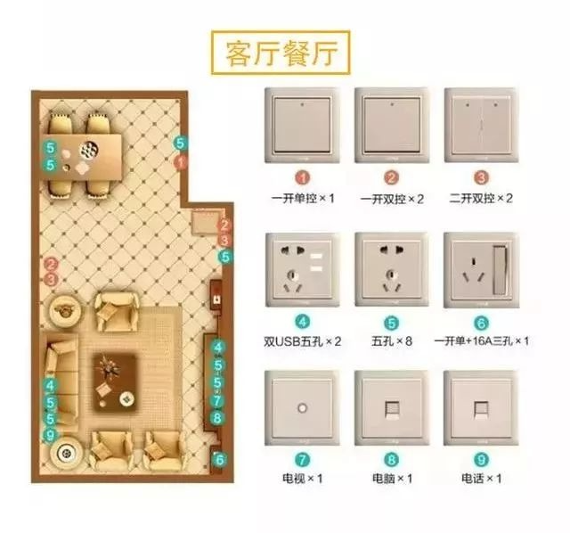 首先,我们来看看全屋开关插座的数量。一般来说,一个标准的三室两厅的房子,至少需要以下数量的开关插座:
